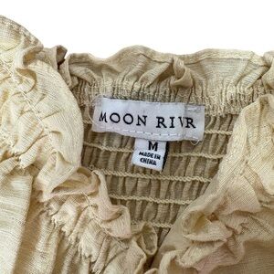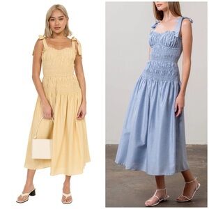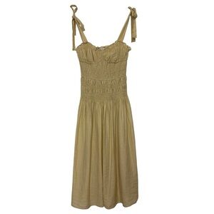 Moon River Yellow Midi Picnic Dress Sundress Adjustable Tie Strap Shirred M