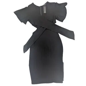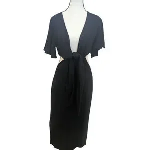 New with tags Lulus midi dress featuring a deep V neckline, soft flutter sleeves, and waist cutouts that create a flattering, sculpted silhouette. The tie-front bodice adds a romantic touch while the clean lines keep the look modern and refined.