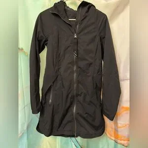 Stay dry and stylish with this versatile Lululemon long-line rain jacket. Designed with a flattering, feminine silhouette and technical features, it’s the perfect outer layer for rainy days or breezy commutes.