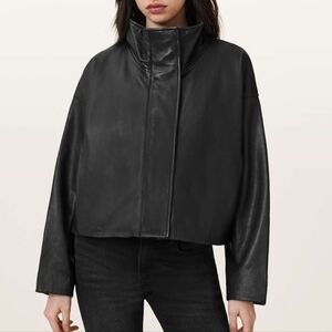 NWT Allsaints Ryder Funnel Neck Leather Jacket Black Large