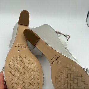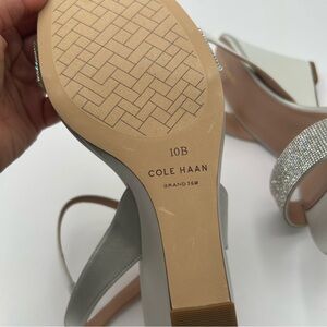 Elegant silver strap sandals. Cream sole with adjustable ankle strap. Perfect for any occasion. New with box.