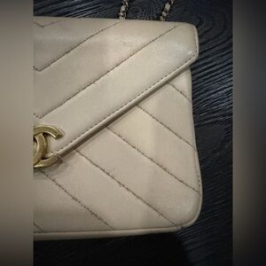 Chanel 2016 Coco Envelope Flap Bag Beige Chevron Quilted Leather Crossbody