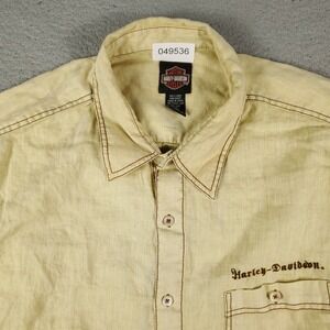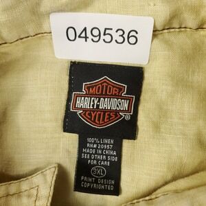 Harley Davidson Shirt Mens Size 3XL Beige Linen Button Up Short Sleeve *