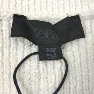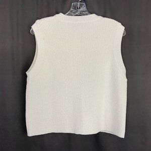 Zara Plain Knit Top/Vest/Cardigan, a Sleeveless Round-Neck Vest, Preppy Academia Office. A ribbed knit sweater vest with a crew neckline, a full-length button placket, front patch pockets, and gold-toned button fastenings. Color: white/cream. Material: acrylic blend. The vest is from ZARA F/W '24 Collection. The black tag with black letters indicates a higher line. The vest is new with a tag, perfect.