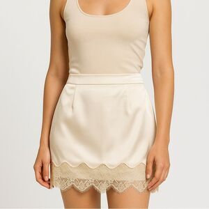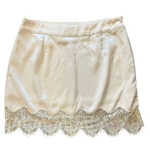 Revolve OnTwelth Cream White Lace Trim Satin Mini Skirt