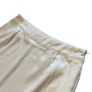 This elegant cream skirt features a delicate lace trim, perfect for adding a touch of sophistication to any outfit.