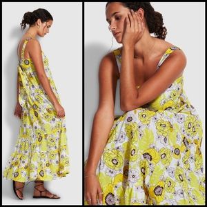 This dress is in great pre owned condition. It is 100% cotton, lightweight and breathable. This is a full maxi length, tiered skirt design with a trendy square neckline. There is a fun bow tie in back. This dress is sold out and a rare find. Size XL, Seafolly Australia.