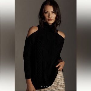Anthropologie Black Cold Shoulder Cable Knit Sweater – Size M