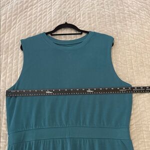 Ultra-soft and effortlessly chic Lou & Grey sleeveless midi dress in a beautiful teal blue tone. Known for their signature soft fabrics, this dress is incredibly comfortable, stretchy, and perfect for casual days, travel, lounging, or effortless minimalist style.