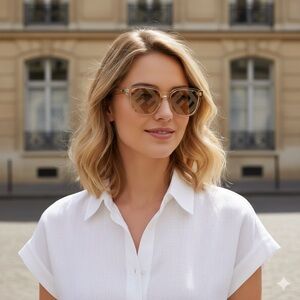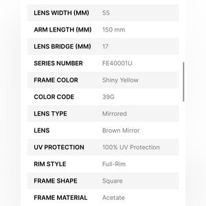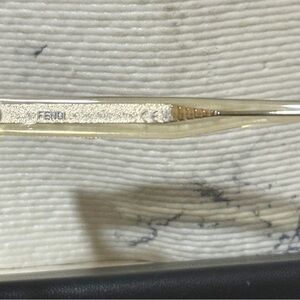 Square frames in transparent yellow acetate with exclusive metal Pequin rivets on the front. Temples with palladium-finish metal core branded with the FF logo. Ivory lenses with FF motif. Mini logos on the arms of the sunglasses as well.