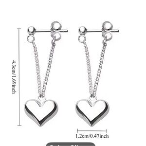 These elegant silver heart drop earrings add a touch of sophistication to any outfit. Perfect for any occasions Women'S Elegant Minimalist Heart-Shaped Dangle Earrings - Delicate Everyday & Party Jewelry, Lightweight Everyday & Formal Events, Perfect Mother'S Day Gift for Women - Year-Round Elegant Earrings for Casual Formal Outfits, Cute Earrings, Versatile Accessory, Sophisticated Style, Polished Finish, Stylish Jewelry, Fashion Lovers, Fashionable Jewelry, Fine Craftsmanship, Fashionconscious Women