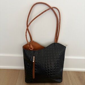 Moda In Pelle Gaia Croc Embossed Leather Convertible Backpack Shoulder Bag