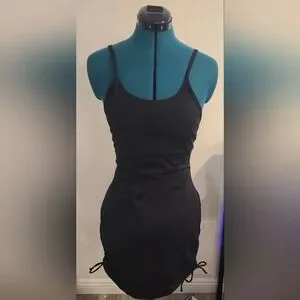 This is a New with Tags Halara Bidycon dress with lace up back, stretch bodycon. Ruched hem at both sides with ties. Limited, rare, hard to find online.