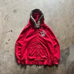 Vintage Y2K Hollister Crimson Red Fur Trim Zip Up Hoodie - Size L