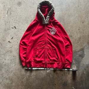 Vintage 2000’s Y2K Hollister Crimson Red Fur Zip Up Hoodie