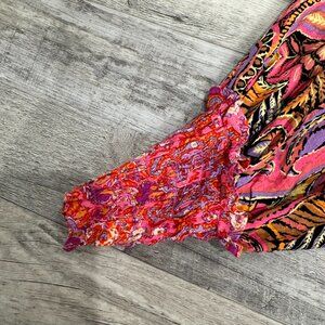 Free People Gemini Multipatterned V-Neck Boho Blouse Size XS Balloon Sleeve S3