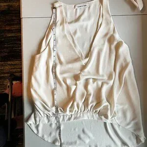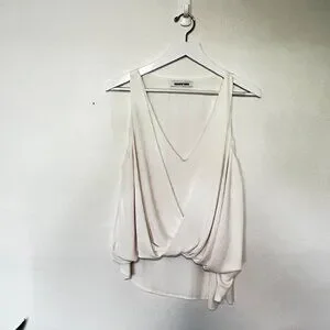 This is an Elizabeth and James creamy white V-neck halter sleeveless top with asymetrical back.