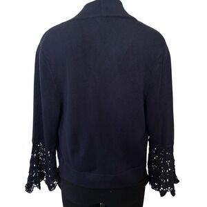 This Eliza J Bolero Cardigan Sweater in women's Small size and Blue color is a stylish and versatile piece perfect for various occasions such as travel, wedding, casual outings, workwear, and business meetings. This cropped sweater features a tight-knit design with long crochet sleeves, adding a touch of elegance to the open front style. Made from spandex, nylon, and acrylic materials, this lightweight sweater is suitable for all seasons and has a regular fit for comfort. Ideal for those who appreciate nautical, classic, and preppy themes in their wardrobe. This Eliza J cardigan sweater is in good pre owned clean condition with minor use wear, no stains, holes, or odor issues, very well maintained. Please review the pictures for more details and size measurement info to ensure a proper fit 34 inch chest 18 inch inseam length thank you.