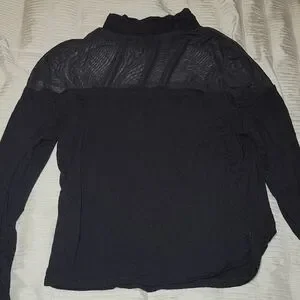 Elegant black top with sheer panel. Long sleeves. Perfect for layering.