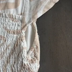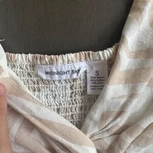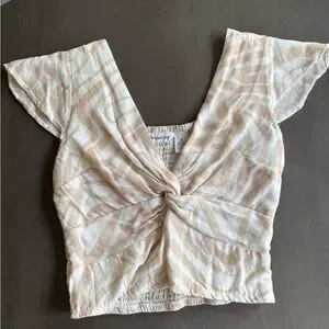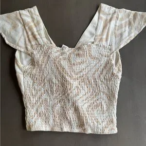 Midnight Sky Beige Printed Crop Flutter Sleeve Blouse Women’s Size Small