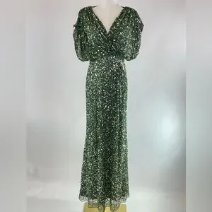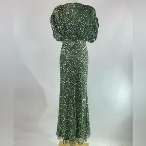 Green (Overlay: 100% Beaded Tulle; Lining: 100% Polyester). Gowns. V-Neck. Cap Sleeve. Back Zipper Closure. Shoulder to Hemline Length: 58". Imported.