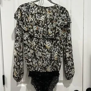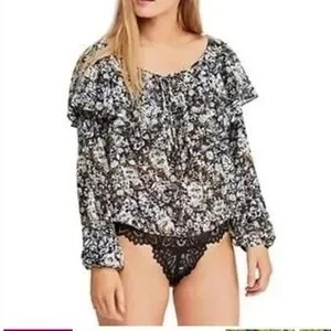 Chic floral bodysuit by Free People. Features a stylish black multi-color design. Ideal for versatile wear.