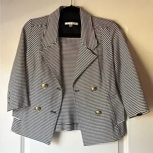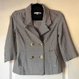 Cabi "Life Jacket" Nautical Navy and White Striped Double-Breasted Blazer