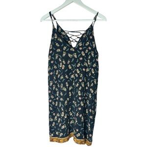Farm Rio Mini Floral Print Colorful Sleeveless Lace up Detail Dress FARM Boho