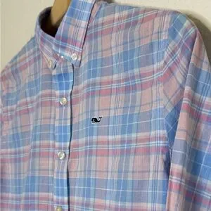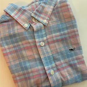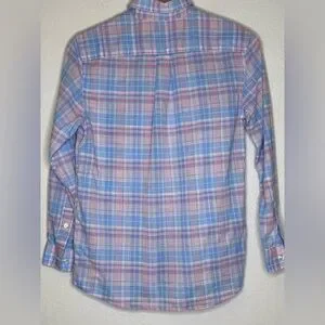 Boys Vineyard Vines Whale Shirt Medium 12-14 Pastel Plaid Button Down Cotton
