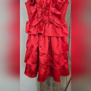 KARLIE Satin Ruffle Smock Dress in Red. Size M NWOT