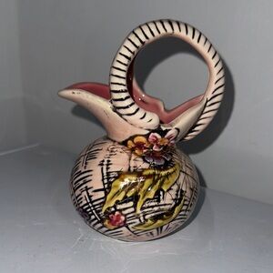pitcher featuring a floral design with a unique handle. Perfect for adding a touch of art to your home decor.