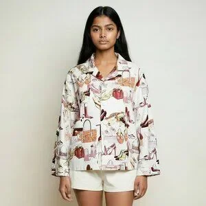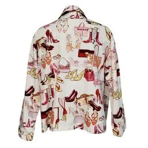 The Cat's Pajamas Novelty Print Top Shoes & Handbags Motif 100% Cotton Size S