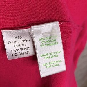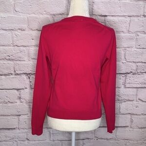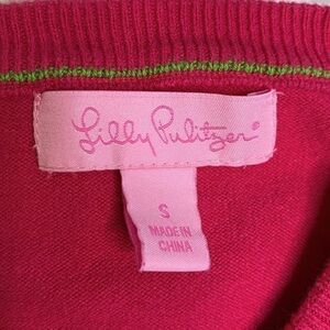 Lilly Pulitzer cotton cardigan sweater. Hot pink cotton/nylon/spandex blend. Clear lucite buttons. Womens size Small. Great used condition.