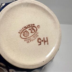 Since each piece of Polish Pottery is hand-crafted, no two pieces of the stoneware are exactly alike. Variations in color, pattern and shape make each piece an individual work of art.