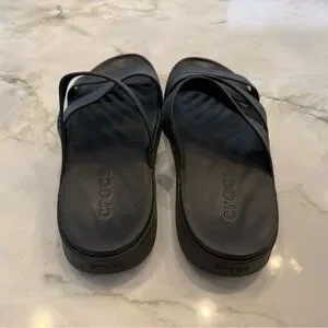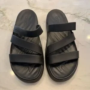 Comfortable black slides with triple strap design. Perfect for casual wear. Soft footbed.