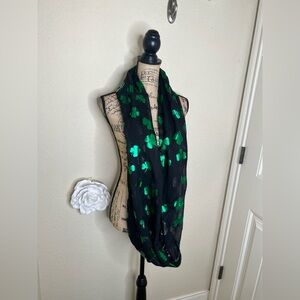 NTM Claire’s Black Sheer Infinity Scarf Green Foil Shamrock St. Patricks Day NWT