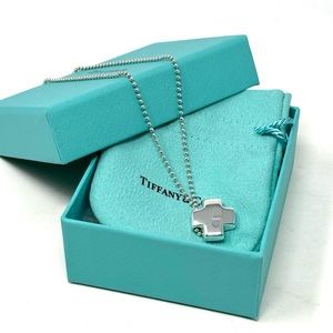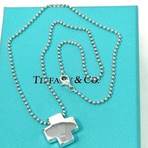 Authentic Tiffany & CO. Roman Square Cross Pendant Necklace.