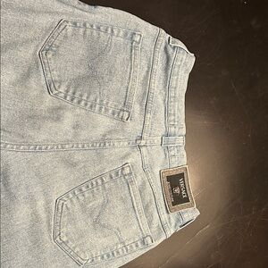 Versace Jeans Couture in sky blue. Features button closure and belt loops.
