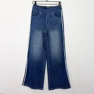 NWOT Halara Flex High Waisted Stripe Wide Leg Flowy Washed Casual Jeans Pockets