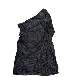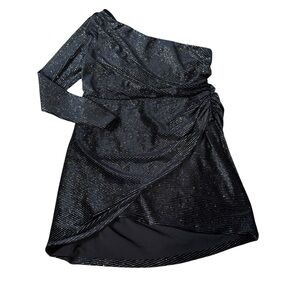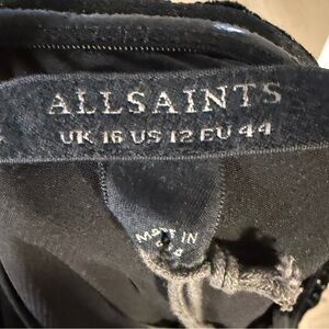 AllSaints Ezra Black Metallic Sparkle Asymmetrical Mini Dress Size 12