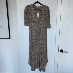 Doen Laurel Dress in Olive Cherry Willow. Women's Size S. Features puff sleeves, empire waist, button down front closure, all over cherry and floral print, unlined. Great dress for casual brunches or daytime outings. This dress is a rare past season favorite is no longer available from the brand. Brand new with tags, never worn.