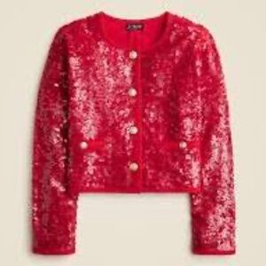J Crew Red Mariner Jersey Lady Jacket with Sequins CF475 size XS NWT
