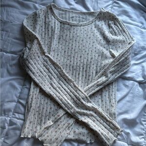 Aeropostale White Floral Ribbed Tee