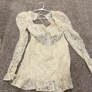 This elegant white lace dress is perfect for any special occasion. Its intricate design and flattering fit make it a must-have in your wardrobe. In great shape