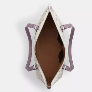 Chic Coach tote with floral pattern. Cream base with purple handles. Perfect for daily use
