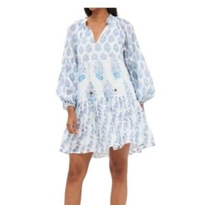 Chic long sleeve dress with a blue pattern. Lightweight and stylish. Perfect for any occasion.