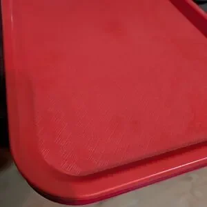 This red cafe tray features a skid resistant surface to help minimize spillage and drying and stacking lugs that help decrease drying times. This lightweight polypropylene construction is easy to clean and NSF approved.