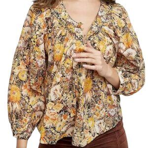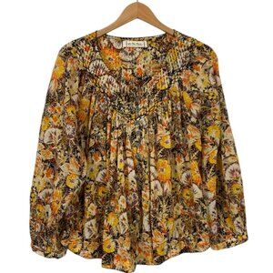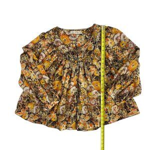 Free People Cool Meadow Peasant Blouse made from a flowy, gauzy cotton. Beautiful top with a yoke detail that features homespun stitching, front button closure, scoop neck and long sleeves with one-button cuffs.Great condition. Please see pictures for more details and measurements.