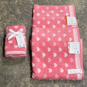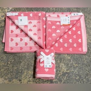 Caro Kids Pink Heart Bath Towel Set of 4 (2 Bath 2 Hand) - NWT