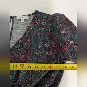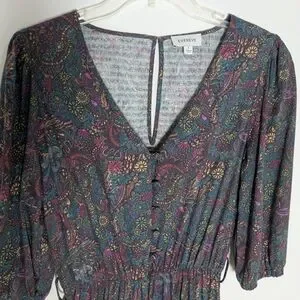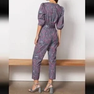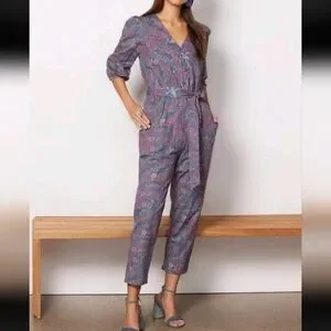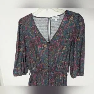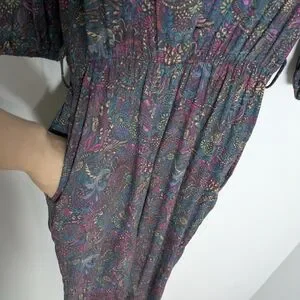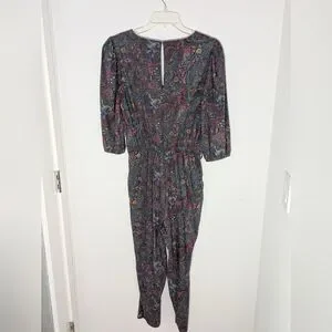 EVEREVE WOMENS floral Fall jumpsuit 3/4 ballon sleeves ockets cotton blend Small